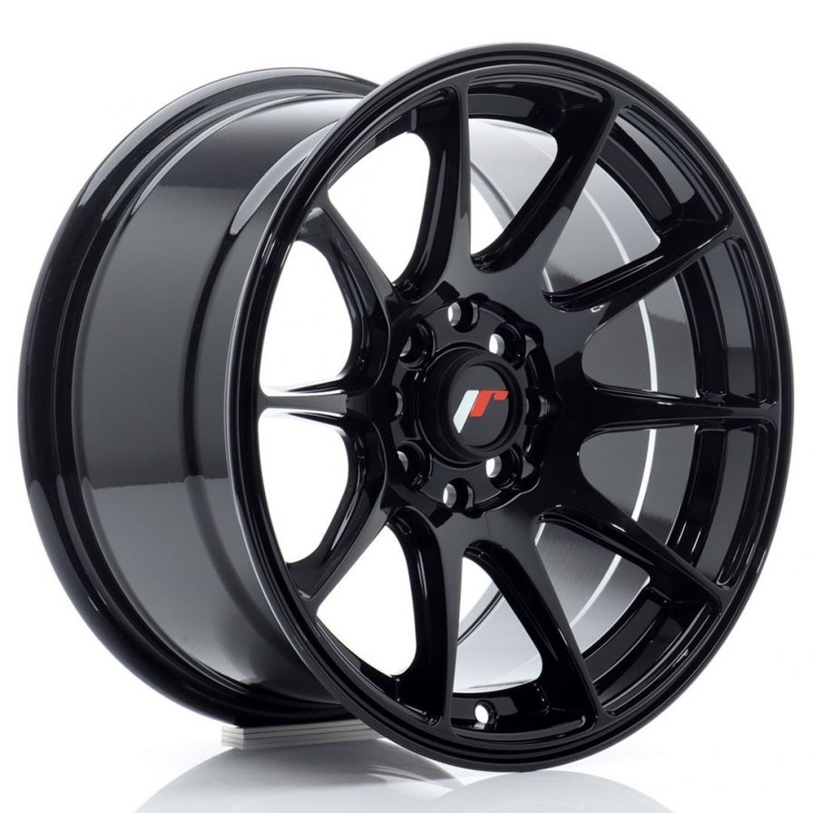 Japan Racing Wheels - JR11 Gloss Black (15x8 Zoll) - Extrem konkaves Speichendesign, je nach gewählter Breite - Zehn schlanke Felgenspeichen - Filigran, sportliche Optik - Lochkreisumrandung rund eingelassen - Speichenenden münden im angedeuteten Tiefbett