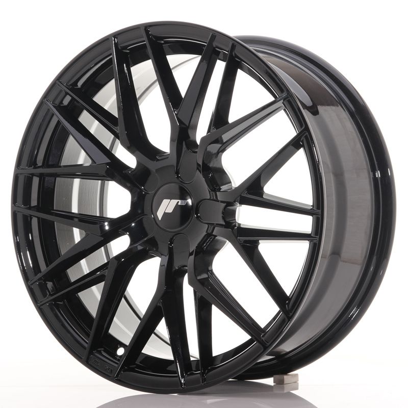 Japan Racing Wheels - JR28 Glossy Black (18x7.5 Zoll) - Modernste Version einer Kreuzspeichenfelge - Kanten, Sicken, Vergabelungen - Stark konkaves Design, je nach gewählter Breite - Dezent integrierte Lochkreisbohrungen