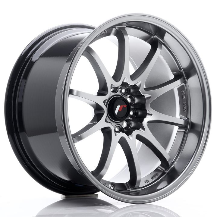Japan Racing Wheels - JR5 Hyper Black (18x10.5 Zoll) - Zehn Speichenfelge im Sterndesign - Massives Tiefbett vorhanden - Lochkreisumrandung rund ausgespart, tief eingelassen - Felgenspeichen leicht konkav - Speichenenden münden im mehrstufigen Tiefbett - Ausgeprägtes Felgenhorn