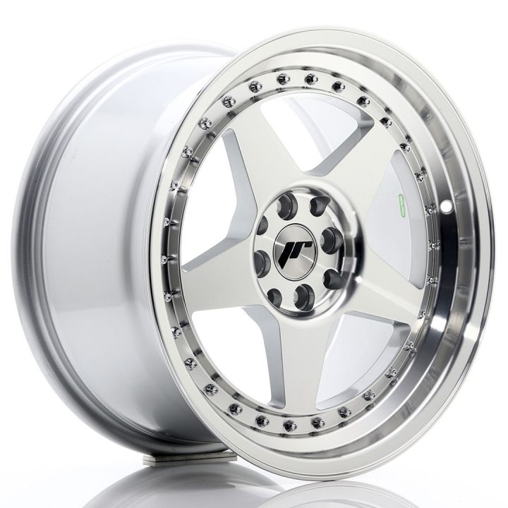 Japan Racing Wheels - JR6 Silver Machined (17x9 Zoll) - Klassisches, massives fünf Speichen Sterndesign - Sehr massives, ausgeprägtes Tiefbett - Mehrteilige Felgenoptik - Oldschool Speichen münden im Zierschrauben Bett - Lochkreisumrandung leicht mehrstufig, rund eingelassen - Ausgeprägtes Felgenhorn