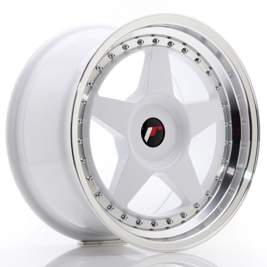 Japan Racing Wheels - JR6 White (17x9 Zoll) - Klassisches, massives fünf Speichen Sterndesign - Sehr massives, ausgeprägtes Tiefbett - Mehrteilige Felgenoptik - Oldschool Speichen münden im Zierschrauben Bett - Lochkreisumrandung leicht mehrstufig, rund eingelassen - Ausgeprägtes Felgenhorn