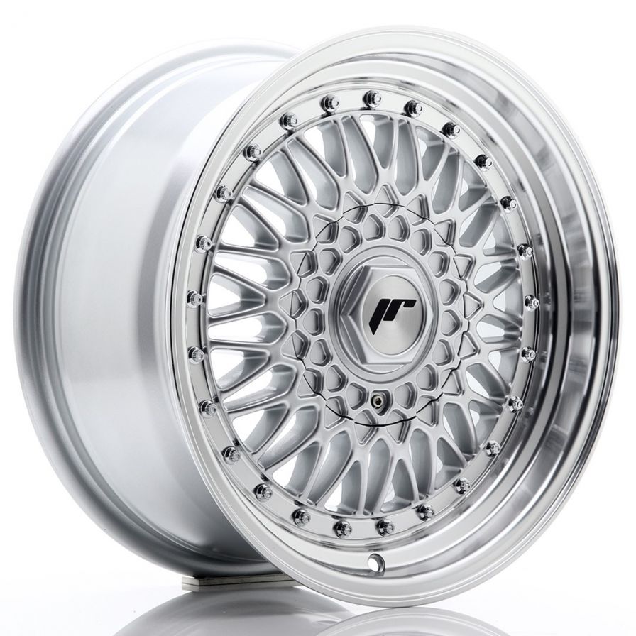 Japan Racing Wheels - JR9 Silver + S (16x7.5 Zoll) - Klassische Oldschool Optik - Starkes, mehrstufiges Tiefbett - Farblich abgesetzte Zierschrauben - Mehrteilige Felgenoptik - Extra große Nabendeckel