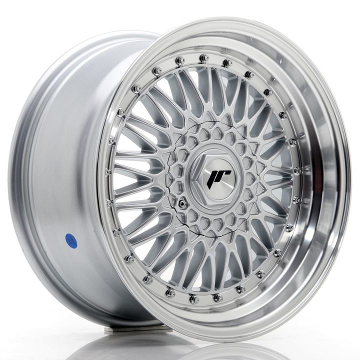 Japan Racing Wheels - JR9 Silver + S (17x10 Zoll) - Klassische Oldschool Optik - Starkes, mehrstufiges Tiefbett - Farblich abgesetzte Zierschrauben - Mehrteilige Felgenoptik - Extra große Nabendeckel