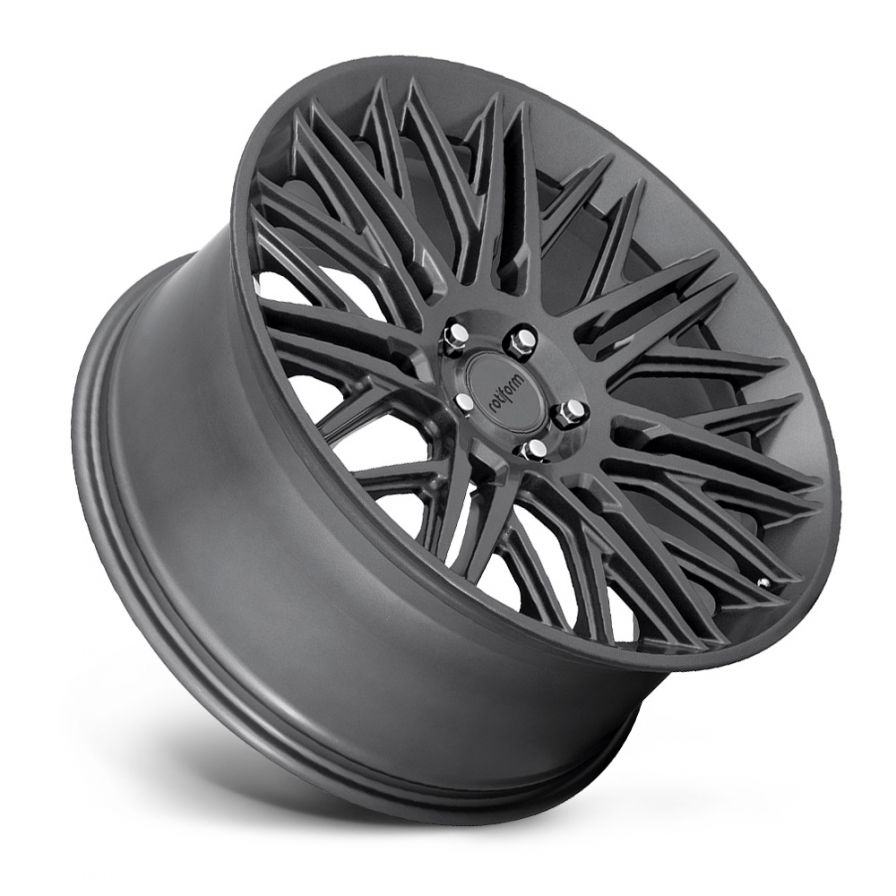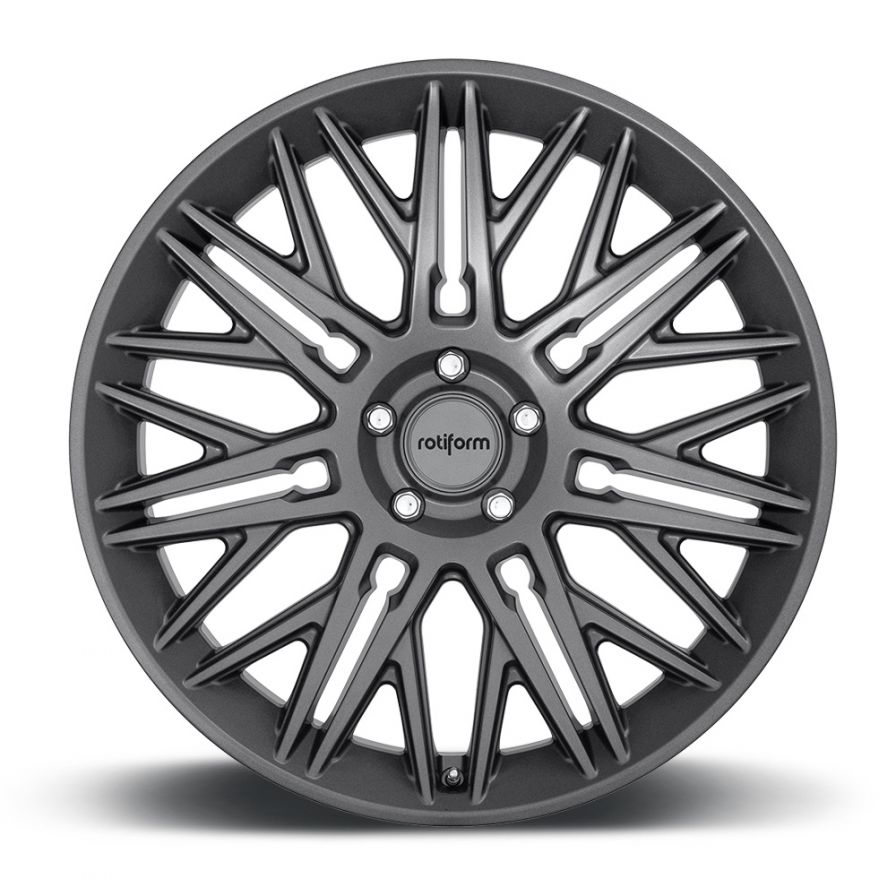 Rotiform - JDR Matt Anthracite (22x10 Zoll) JDR - Attraktives stilisiertes Kreuzspeichendesign - Eine optische Besonderheit bei diesem Design ist die Vielzahl an Sicken sowie die optisch sich überlappenden Vergabelungen - Rundlich, unauffällig integrierte Lochkreisumrandung - Einzigartiges konkav ausgeführtes Felgenbett - Pulverbeschichtet