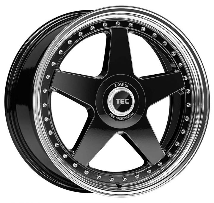 TEC Speedwheels - GT EVO-R Schwarz Glanz (19x8.5 Zoll) - Sportliche Oldschoolfelge im 5 Sterndesign - Massives und poliertes Tiefbett - Klassisch gestaltetes 5 Speichenrad - Lochkreisumrandung wird mit einem Nabendeckel (in Zentralverschluss Optik optional) vollständig abgedeckt - Eine Vielzahl von Zierschrauben schließen das sportliche und extrem harmonische sowie schöne Design ab