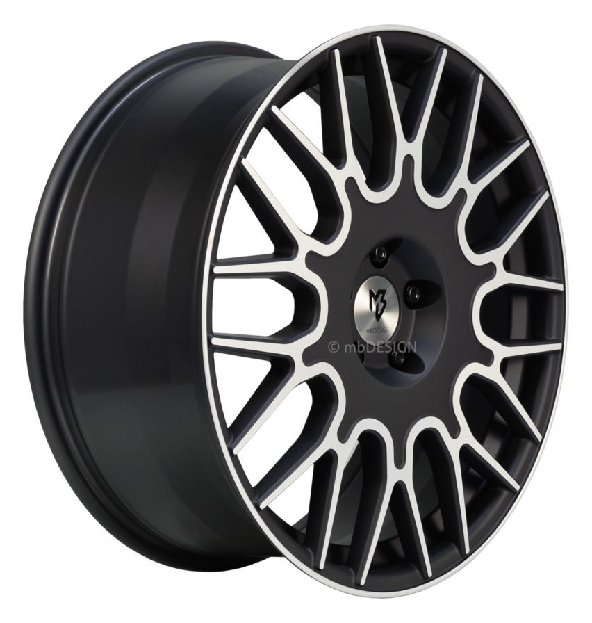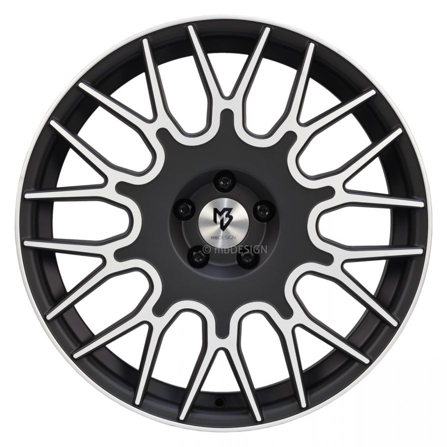 mbDESIGN - LV2 Schwarz stumpfmatt poliert (19x8.5 Zoll) LV2 - Y-Speichen Designfelge von mbDesign - Das interessante gestaltete Felgenmittelteil bildet sich aus einer stilisierten Zusammenfassung der optisch weiter verlaufenden Speichen - Mit gewichtsreduzierendem Undercut - Y-Speichen erstrecken sich fast bis zur letzten Felgenhornkante und liegen dabei optisch auf - Das Felgenmittelteil ist leicht konkav und tief eingelassen